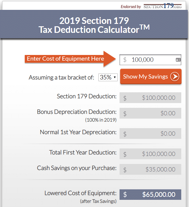 Section 179 allows businesses to deduct the full purchase price of qualifying equipment purchased or financed during the tax year. That means that if you buy (or lease) a piece of equipment, you can deduct the FULL PURCHASE PRICE from your gross income. It’s an incentive created by the U.S. government to encourage businesses to buy equipment and invest in themselves